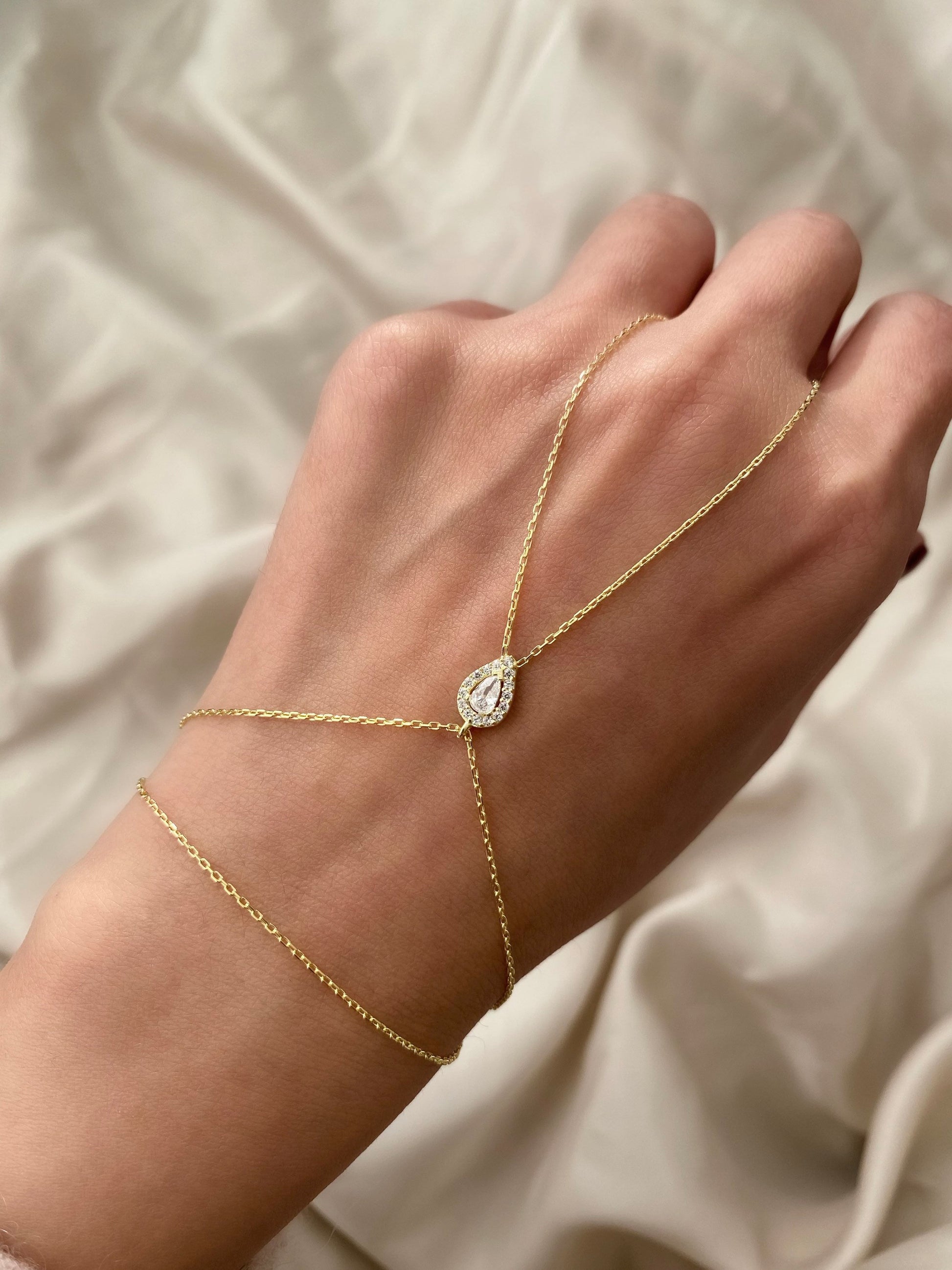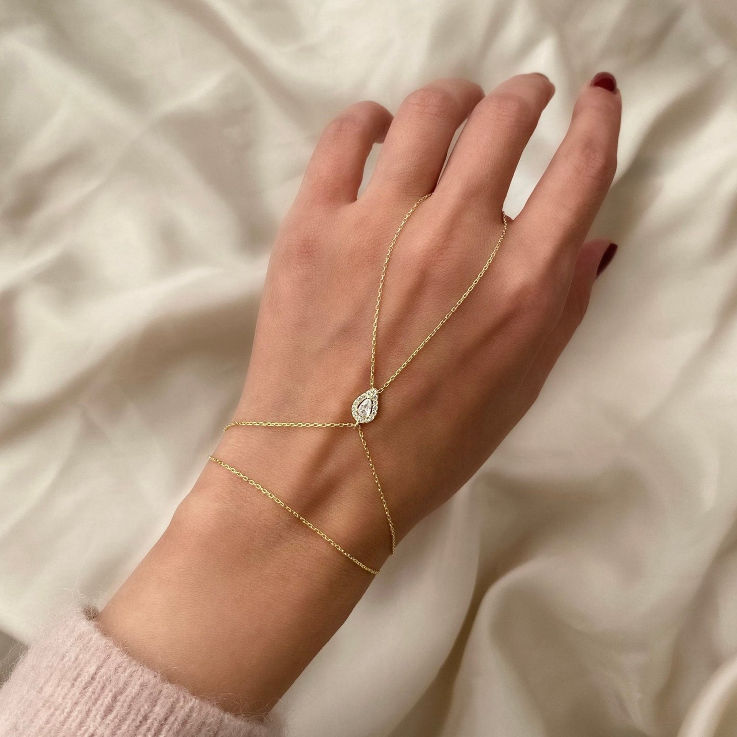 Details: Stand out from crowd with this delicate Cz Drop Hand Chain Bracelet!
