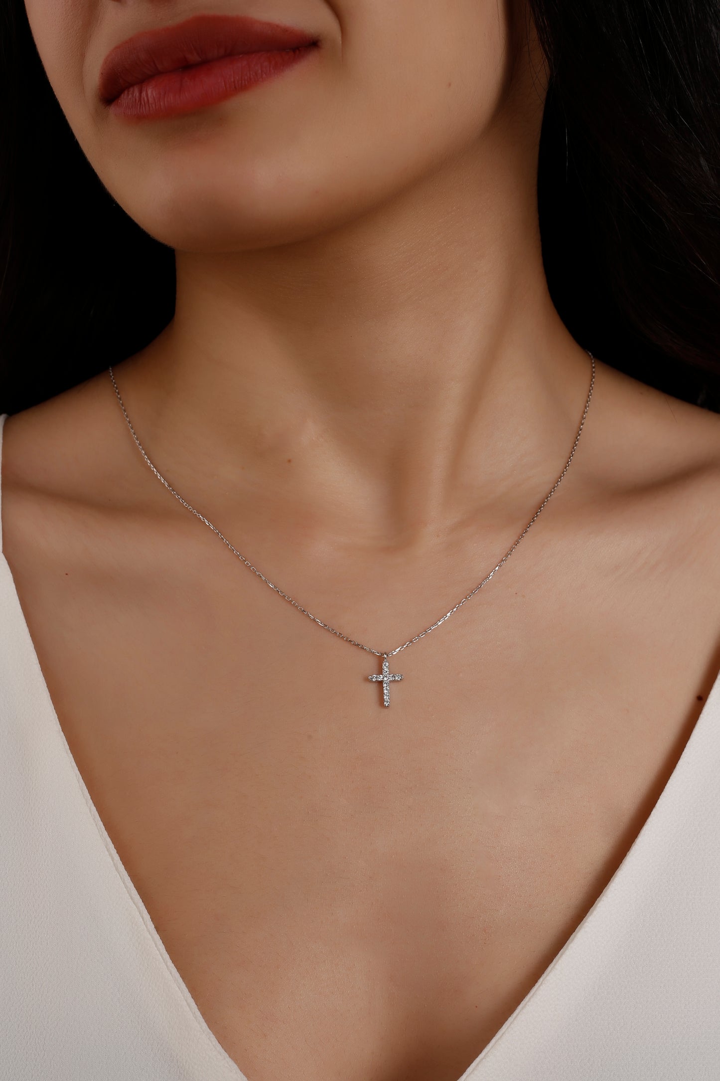 Details: Our Pave Cross Necklace is dainty, light weight and so chic. Perfectly worn alone or layered with your favorite pieces.