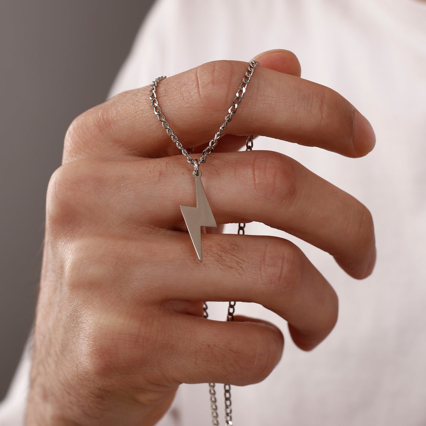 Details: This stylish lightning bolt necklace is perfect for men who want to make a statement.